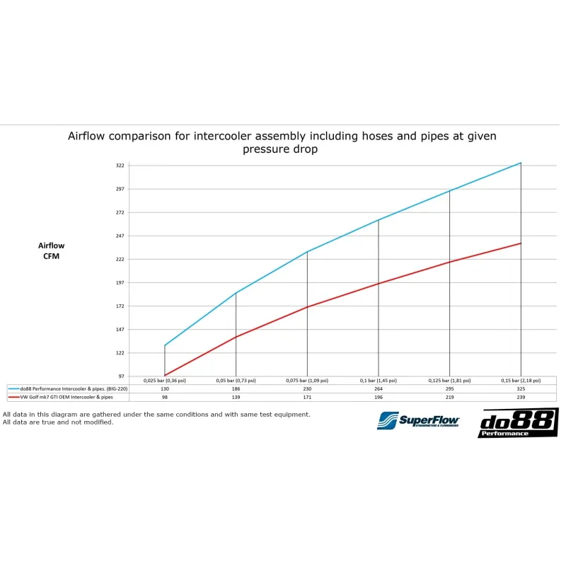 - Air flow at 0,15bar/2,18psi pressure drop: 325 CFM (239 CFM), do88 36% higher!