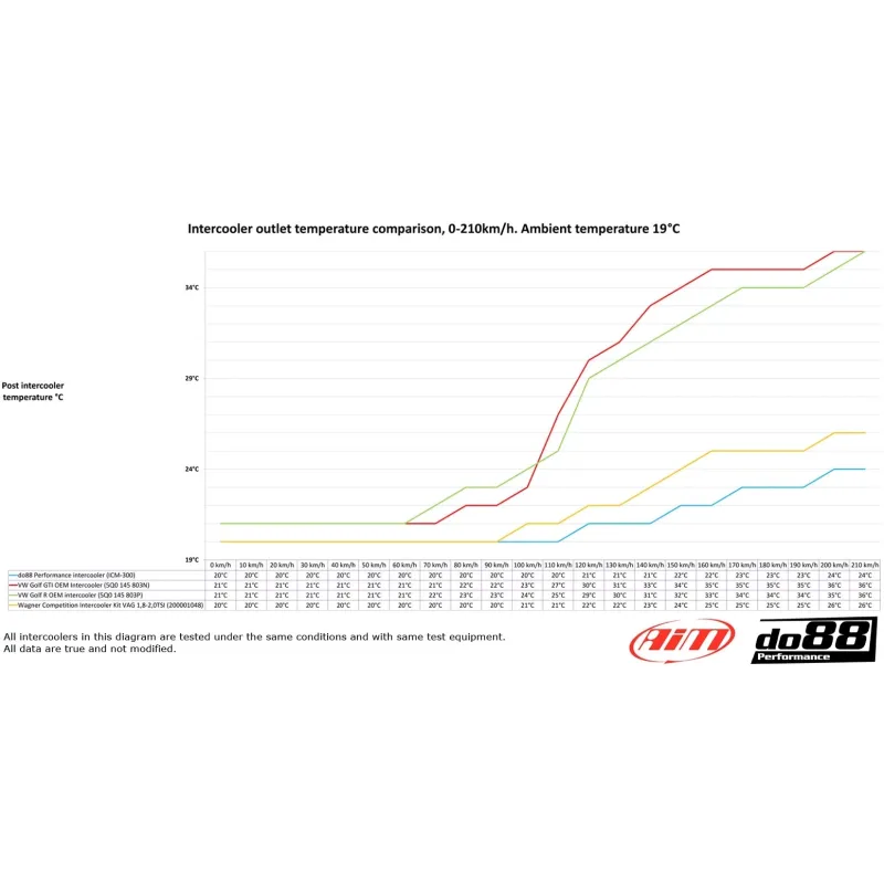 - Post intercooler air temperature at same conditions: 24°C (36°C), do88 12°C lower!